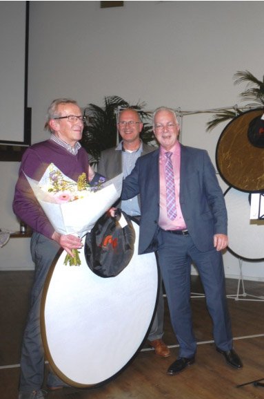 De prijswinnaars ontvingen allen een boeket bloemen en een reflectie scherm. Kees overhandigde de schermen met de ‘opdracht’ om ter plaatse het scherm in het bij behorende etui te doen! En dat was nog niet zo simpel.